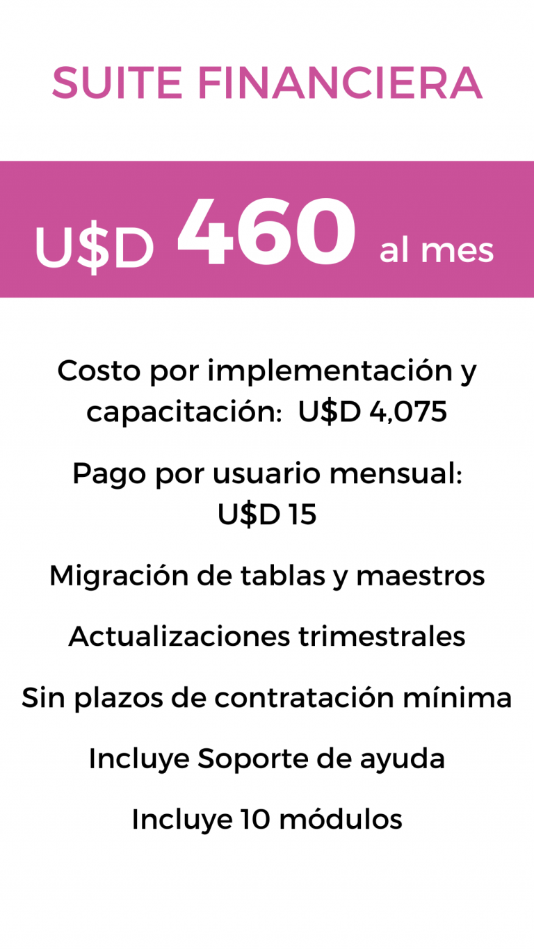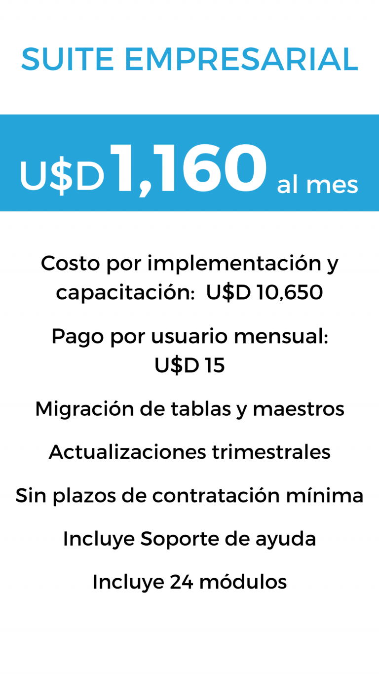 Nuestras tarifas son transparentes, cuando eliges cualquiera de nuestros planes no tendrás costos adicionales por algún tipo de addons o integración para adaptarlo a alguna aplicación específica ya que somos desarrolladores del ERP y CRM es por eso que tendrás un sistema adaptado a la normativa peruana con actualizaciones periódicas.